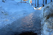 ![]() 温度が下がって凍ってしまい、つるつる路面になる |