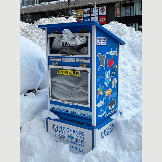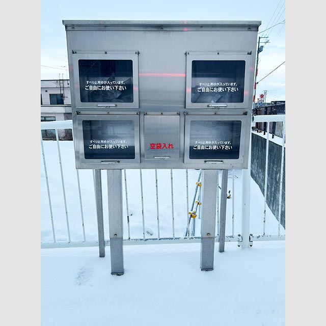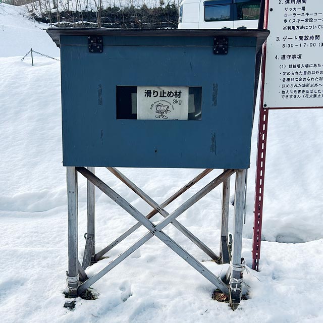 転ばないための強い味方「砂箱」。誰でも自由に利用できるこの砂箱には、